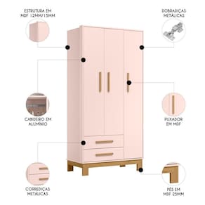 Projetado com um design encantador, o Guarda-Roupa 3 Portas possui pés em MDF de 25mm que acrescentam charme e aconchego ao ambiente. Com suas três portas e duas gavetas, oferece amplo espaço de armazenamento para roupas, acessórios e outros itens essenciais, mantendo o quarto sempre organizado. Os puxadores duplos em MDF, com alto padrão de acabamento, proporcionam um toque de sofisticação ao móvel. Com acabamento de alta qualidade revestido em pintura UV garante durabilidade e resistência, destacando ainda mais a cor. Além disso, o Guarda-Roupa Infantil conta com um sistema antitombamento para evitar riscos de acidentes, proporcionando mais no uso diário. O design moderno e elegante harmoniza perfeitamente com diferentes estilos de decoração. Este Guarda-Roupa combina praticidade e beleza, tornando-o uma excelente adição a qualquer ambiente, proporcionando um espaço agradável e bem arrumado para todas as fases da vida.