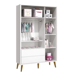 Guarda Roupa Infantil 3 Portas Theo Retrô Branco Fosco Com Pés Amadeirado - Reller Móveis Branco Fosco Guarda Roupa Infantil 3 Portas Theo Retrô com Pés Amadeirado - Reller Móveis O Guarda-Roupa Theo Retrô é uma inspiração de épocas clássicas, uma releitura do estilo antigo nos tempos atuais, rejuvenescendo o ambiente com cores e formas. Seus pés pontiagudos realçam ainda mais essa proposta. O Guarda-Roupa Theo Retrô além de muito estiloso, oferece amplo espaço para organizar os pertences do seu filho, suas gavetas possuem corrediças telescópicas e puxadores embutidos. Deixe o quartinho do seu filho moderno e encantador com o Guarda-Roupa Theo Retrô. ESPECIFICAÇÕES: - Estrutura em MDF - Pintura UV atóxica - Acabamento fosco - 3 Portas - 2 Gavetas - Corrediças telescópicas - Puxadores embutidos - Cabideiro metálico - Prateleiras internas - Pés pontiagudos em madeira maciça - Maior organização e praticidade