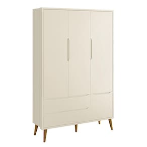 ESPECIFICAÇÕES: Estrutura em MDF Pintura UV atóxica Acabamento fosco 3 Portas 2 Gavetas Corrediças telescópicas Puxadores embutidos Cabideiro metálico Prateleiras internas Pés pontiagudos em madeira maciça Maior organização e praticidade