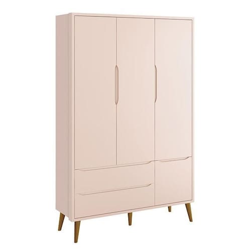 Guarda Roupa Infantil 3 Portas Theo Retrô Rosa Fosco Com Pés Amadeirado - Reller Móveis Rosa Fosco Guarda Roupa Infantil 3 Portas Theo Retrô com Pés Amadeirado - Reller Móveis O Guarda-Roupa Theo Retrô é uma inspiração de épocas clássicas, uma releitura do estilo antigo nos tempos atuais, rejuvenescendo o ambiente com cores e formas. Seus pés pontiagudos realçam ainda mais essa proposta. O Guarda-Roupa Theo Retrô além de muito estiloso, oferece amplo espaço para organizar os pertences do seu filho, suas gavetas possuem corrediças telescópicas e puxadores embutidos. Deixe o quartinho do seu filho moderno e encantador com o Guarda-Roupa Theo Retrô. ESPECIFICAÇÕES: - Estrutura em MDF - Pintura UV atóxica - Acabamento fosco - 3 Portas - 2 Gavetas - Corrediças telescópicas - Puxadores embutidos - Cabideiro metálico - Prateleiras internas - Pés pontiagudos em madeira maciça - Maior organização e praticidade
