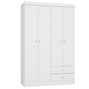 Guarda Roupa Infantil Louise moderno e funcional, mantendo o quarto sempre organizado! Produzido em MDP 12/15 mm (fundo em 3 mm), com acabamento em pintura UV. Possui portas e gavetas com dobradiças e corrediças metálicas, puxadores redondos em plástico, prateleiras internas, cabideiros (superior e inferior) em alumínio e espaço para sapatos. Produto será entregue em 02 volumes.