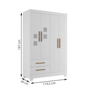 Características do produto: Estrutura do produto: MDF e MDP 4 portas -2 delas com detalhe em acrílico e 2 lisas- 2 gavetas 4 prateleiras 1 cabideiro 1 calceiro Dobradiça metálica de pressão Corrediças metálicas Jogo de pés que permitem passagem de ventilação por baixo do móvel Acabamento interno brilhante Acabamento ultravioleta atóxico Escala de brilho acetinado