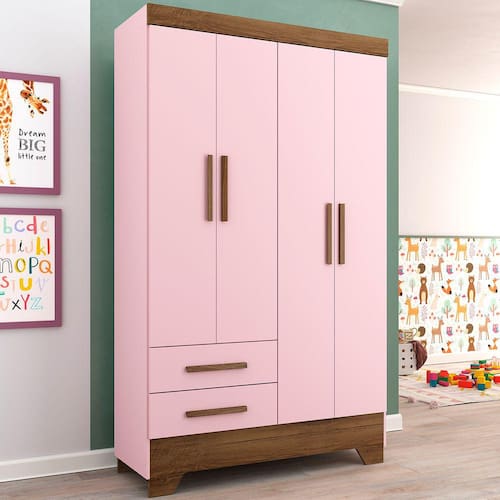 O(a) Guarda-Roupa Infantil 4 Portas 2 Gavetas Rosa - Loja é produzido em MDF e MDP na escala de brilho Fosco, e possui um grau de dificuldade de montagem: Médio.