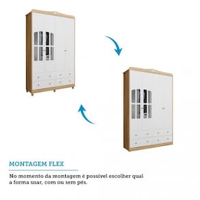 A linha Elô New torna o quarto do seu bebê um verdadeiro conto de fadas. O design provençal, elegante e atemporal, foi cuidadosamente pensado para dar charme e sofisticação ao ambiente. O Guarda Roupa Elo da Móveis Peroba é amplo e funcional, com detalhes de extrema elegância. A estrutura é de 100 MDF e o acabamento UV é atóxico. Tudo oferece a qualidade e o design que você procura. Aproveite para conhecer e se deliciar-se! Possui quatro portas, sendo duas delas janelasdas com PETG Cristal e duas lisas, além de quatro gavetas com corrediças telescópicas.
