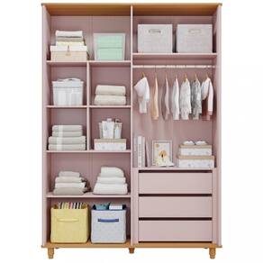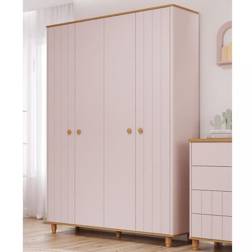 Guarda Roupa Infantil 4 Portas 4 Gavetas Lívia Permobili - Rosa Claro