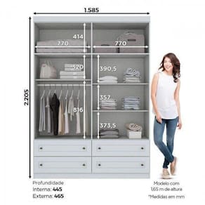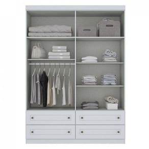 Guarda Roupa Infantil 4 Portas 4 Gavetas Nova York Espresso Branco. Produto inspirado na decoração escandinava, aconchegante e encantador, capaz de adequar o tradicional com o contemporâneo, excelente para modernizar seu ambiente, podendo ser utilizado para quartos adulto, juvenil e infantil. Possui medidas de 220cm de altura, 158,5cm de largura e 46,5cm de profundidade. Tanto nas portas quantas nas gavetas possuem desenhos de usinagem em baixo relevo, gavetas com corrediças telescópicas asseguram um fechamento suave e maior abertura das gavetas, puxadores ABS na cor bronze. Roupeiro elegante e sofisticado excelente para compor seu ambiente e proporcionando sutileza ao espaço. Ean: 7890022079107