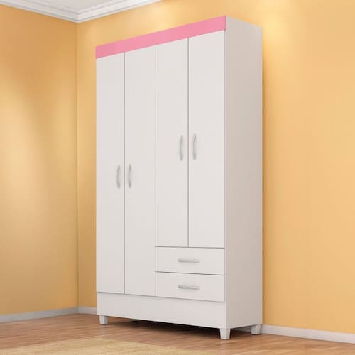 O Guarda-Roupa Doce Infância tem estrutura produzida em MDP e revestimento em pintura UV. Cabideiro e calceiro em madeira revestidos. Gavetas com corrediças metálicas, para mais estabilidade ao abrir e fechar. Portas com dobradiças metálicas, para mais estabilidade ao abrir e fechar. Puxadores em plástico ABS que são mais fáceis de higienizar. Pés em PVC que ajudam proteger o móvel da umidade e oferecendo maior durabilidade. Acabamento da Prateleira: Pintura UV Escala de Brilho da Prateleira: Semi-Brilho Acabamento da Gaveta: Pintura UV Escala de Brilho da Gaveta: Brilhante Possui Organizador de Gaveta: Não Acabamento da Porta: Pintura UV Escala de Brilho da Porta: Brilhante Material do Puxador da Porta: Plástico Altura dos Pés: 4,7 cm Altura Máxima dos Pés: 4.7000 codigo_ean: 7900288197870 Complexidade da Montagem: Média: pode ser montado por mais de uma pessoa e/ou necessite de maior conhecimento para montagem Cor: Branco/Rosa Cor da Porta: Branco Cor do Produto: Branco/Rosa Cor do Puxador: Cromado Cor Flex: Sim Cor Interna: Branco Escala de Brilho: Brilhante Gaveta com Chave: Não Guarda-Roupa Suporta Até (kg): 35 kg Informações Complementares: As cores do produto podem sofrer variações de tonalidade de acordo com as configurações do seu dispositivo. Imagens meramente ilustrativas. Itens para decorar o produto e o ambiente não acompanham o produto. Caixa revestida por plástico termoencohível e p Itens Inclusos: 1 Guarda-Roupa, Kit Ferragens e Manual de Montagem Linha ou Coleção: Doce Infância Manual de Especificação Técnica: https://product-hub-prd.madeiramadeira.com.br/153671821/documents/b0e219ac-a11a-42d9-9248-bd4d4944cd8a308706930281753190308626.pdf Manual de Montagem e Instalação: https://product-hub-prd.madeiramadeira.com.br/153671821/documents/755f59c8-ba55-478f-bc7d-d816730482dd3087068302817531903054475.pdf Marca: Demóbile Material da Gaveta: MDP Material da Porta: MDP Material da Prateleira: MDP Material dos Pés: Plástico Material Principal: MDP modular: Não Montagem Flex: Sim Necessita Montagem: Sim Nicho com Cabideiro: Não Origem do Produto: Nacional Peso: 61 kg Peso Máximo por Gaveta: 3 kg Peso Máximo por Prateleira: 5 kg Porta Janelada: Não Possui Calceiros: Não Possui Capelinha: Não Possui Espelho: Não Possui Ganchos: Não Possui Nichos: Não Possui Penteadeira: Não Possui Pés: 04 Possui Portas: Sim Possui Prateleiras: Sim Produto Montado: Sim Quantidade de Cabideiros: 01 Cabideiro Quantidade de Gavetas: 02 Gavetas Quantidade de Prateleiras: 03 Prateleiras Recomendações de Uso, Manutenção e Limpeza: Higienizar com flanela limpa e seca. Sapatas Niveladoras: Não Sistema de Montagem: Parafusos e cavilhas. Suporta Até (kg): 35 kg Tipo de Corrediça da Gaveta: Metálica Simples Tipo de Dobradiça/Corrediça da Porta: Metálica Tipo de Gaveta: Externa Tipo de Guarda-Roupa: Infantil Tipo de Puxador da Porta: Externo