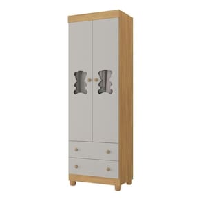 Guarda-roupa Infantil 62cm 2 Portas Com Vidro E 2 Gavetas Fofura Multimóveis Mp4481 Madeirado/off White - Branco