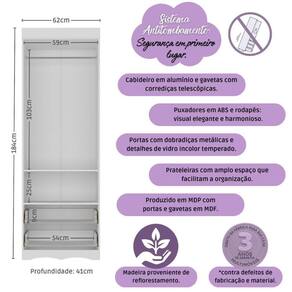 - Detalhes de vidro incolor temperado 3mm nas portas: toque charmoso que permite visualizar o interior do móvel.