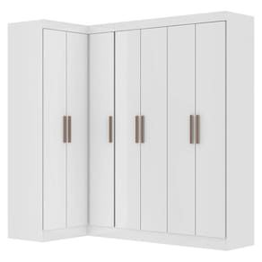 Guarda-Roupa Infantil 7 Portas Jasmim Branco. Modulado Jasmim - Funcionalidade e Estilo. É composto por diferentes módulos que podem ser combinados de acordo com seu gosto e espaço. Esta modulação conta com um Guarda Roupa de Canto e mais um Guarda Roupa 2 portas e um Guarda Roupa 5 portas, os quais possuem amplo espaço interno muito bem dividido, com prateleiras que permitem um melhor aproveitamento do espaço acomodando com facilidade roupas, calçados e brinquedos, além de seus cabideiros em madeira que oferecem resistencia e versátilidade ao uso diário. Modulado Jasmim é a escolha certa para você que busca praticidade e um visual moderno para o quarto infantil.