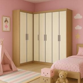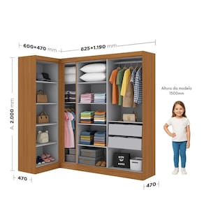 Esta modulação conta com um Guarda Roupa de Canto e mais um Guarda Roupa 2 portas e um