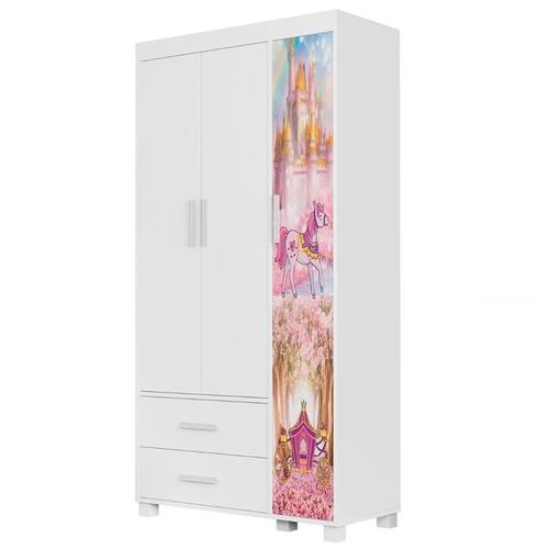 Guarda Roupa Infantil 89cm Com 3 Portas Carruagem Rosa Z53 - Mpozenato
