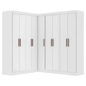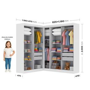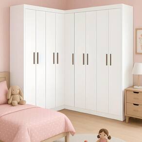 Guarda-Roupa Infantil 9 Portas Jasmim Branco. Modulado Jasmim - Funcionalidade e Estilo. É composto por diferentes módulos que podem ser combinados de acordo com seu gosto e espaço. Esta modulação conta com um Guarda Roupa de Canto e mais dois Guarda Roupa 9 portas, os quais possuem amplo espaço interno muito bem dividido, com prateleiras que permitem um melhor aproveitamento do espaço acomodando com facilidade roupas, calçados e brinquedos, além de seus cabideiros em madeira que oferecem resistencia e versátilidade ao uso diário. Modulado Jasmim é a escolha certa para você que busca praticidade e um visual moderno para o quarto infantil.