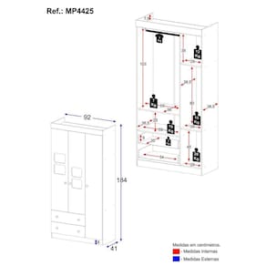 - 3 portas e 2 gavetas (frontais em MDF): amplo espaço interno para organizar roupinhas e acessórios.