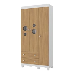 Guarda-roupa Infantil 92cm Com Vidro 3 Portas E 2 Gavetas Suspiro Multimóveis MP4457 Branco/madeirado