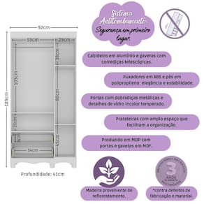 - 3 portas e 2 gavetas (frontais em MDF): amplo espaço interno para organizar roupinhas e acessórios.