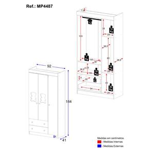 Dimensões do Produto Montado: Altura: 184cm | Largura: 92cm | Profundidade: 41cm *Você pode consultar as medidas detalhadas na imagem técnica do produto.