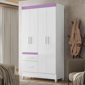 Começou a montar o quartinho do seu pequeno? Então apresentamos para você este belo guarda roupa da linha Madri. Com um design moderno, conta com quatro portas e duas gavetas equipadas com corrediças metálicas, garantindo um deslizamento suave e . Seu ótimo espaço interno permite acomodar as roupinhas e acessórios com facilidade. O destaque e a opção no momento da montagem, nas cores branco/ rosa/ azul/ lilás, personalizando de acordo com o ambiente. Além disso, os pés em PVC proporcionam mais estabilidade e facilidade na limpeza. Fabricado pela Moval, é desenvolvido em MDP de qualidade. Sendo a escolha perfeita para busca praticidade, organização e um toque de charme para o quarto do seu filho, aproveite!
