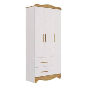Possui 3 portas lisas, cabideiro metálico para pendurar roupas de forma organizada e 2 gavetas amplas com corrediças telescópicas metálicas para abertura suave e silenciosa. Os puxadores, fabricados em MDF revestido com papel melamínico, proporcionam durabilidade e beleza. O produto acompanha dois modelos de rodapés (reto ou usinado/torneado), permitindo personalizar o visual durante a montagem.
