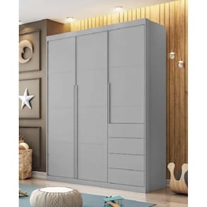 Guarda Roupa Infantil Bebê Pérola 4 Gavetas 3 Portas CZ - Cinza