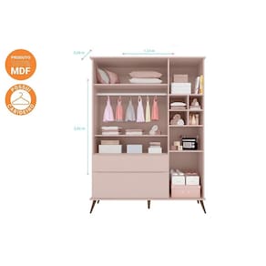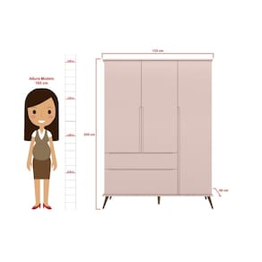 Guarda Roupa Infantil Bebê Retrô Melinda 2 Gavetas 3 Portas Rosê - Phoenix Baby