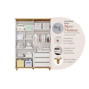 Tipo de Cabideiro - Aéreo Material dos Cabideiros - Cabideira Metálico Tipo de Porta do Guarda-Roupa - Portas de Bater Material das Portas - Portas em MDF Tipo de Dobradiças - Dobradiças de 35mm com Amortecimento Quantidade de Portas - 4 Portas de Abrir Material das Gavetas - Gavetas em MDF Tipo de Corrediça - c/ Corrediças Telescópicas Quantidade de Gavetas - 3 Tipo dos Pés - Madeira Maciça Quantidade de Pés - 5 Pés Material das Prateleiras - Prateleiras em MDF Quantidade de Prateleiras - 3 Quantidade de Nichos - 4 Nichos