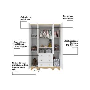 Guarda Roupa Infantil c/ 4 Portas e 3 Gavetas Júnior Branco - Peroba
