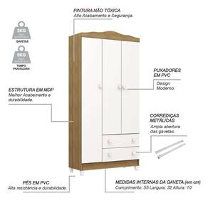 que tal o guarda-roupa infantil candy? um quarto infantil organizado facilita muito a rotina e até nos deixa mimar mais o pequeno, né? com o guarda-roupa candy, você ganha 3 portas e 2 gavetas para arrumar roupinhas, acessórios, itens de higiene, fraldas e tudo o que mais for necessário ao dia dia. estruturado em materiais resistente, o móvel tem ótima durabilidade, além de carregar um visual neutro e típico do universo infantil, daí fica fácil montar uma decoração graciosa no cômodo. agora, além de um quarto bonito, sua criança vai ganhar mais tempo com você :)