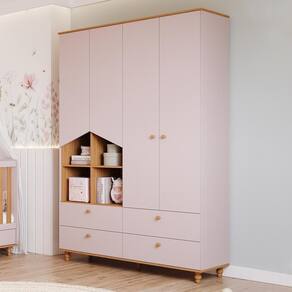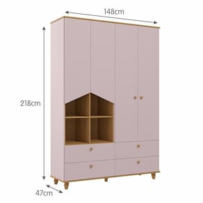 Guarda Roupa Infantil Casinha 4 Portas e 4 Gavetas - Permóbili Baby