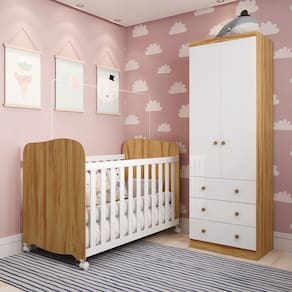 Guarda Roupa Infantil 3 Portas 2 Gavetas Linha Encanto 90cm Branco/Cinnamon - Completa Móveis