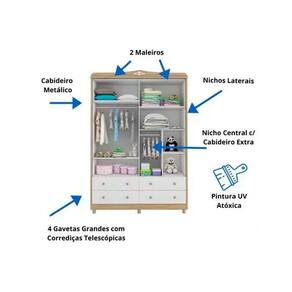CARACTERÍSTICAS DE MÓVEIS Tipo de Estrutura do Móvel - 100% MDF Tipo de Pintura - UV Tipo de Acabamento da Pintura - Semi Brilho Tipo de puxador - ABS/PVC Quantidade de Prateleiras - 5 Prateleiras Quantidade de Gavetas - 4 Gavetas Diferenciais da Gaveta - c/ Corrediças Telescópicas Quantidade de Portas - 4 Portas de Abrir Garantia - 3 meses