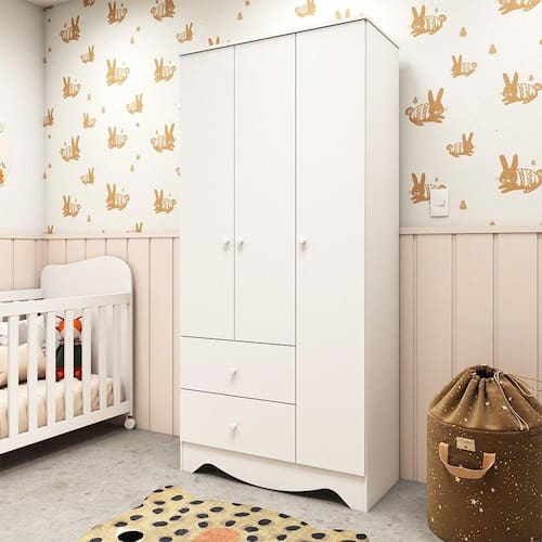 O Guarda Roupa Infantil Ben é um produto 100% MDF, desenvolvido com estilo provençal, seus espaços e divisórias pensadas para uma perfeita organização. Sua pintura é atóxica, possui 3 portas com dobradiças metálicas, 3 prateleiras, cabideiro metálico, puxadores plásticos e 2 gavetas com corrediças telescópicas. Possui sistema antitombamento que proporciona maior segurança aos pequenos. Acabamento da Gaveta: Pintura UV Acabamento da Porta: Pintura UV Acabamento da Prateleira: Pintura UV Ambiente Principal: Quarto de Bebê Complexidade da Montagem: Alta: deve ser montado por um montador especializado Cor: Branco Brilho Cor do Produto: Branco Brilho Cor Flex: Cor Interna: Linho Escala de Brilho: Brilhante Escala de Brilho da Gaveta: Brilhante Escala de Brilho da Porta: Brilhante Escala de Brilho da Prateleira: Semi-Brilho Fita Integrada: Gaveta com Chave: Não Guarda-Roupa Suporta Até (kg): 40 kg Informações Complementares: • Acompanha 2 rodapés de montegem opcional, 1 reto e 1 torneado (usinado). • Pintura atóxica. • Fundo em HDF 3mm. • Acabamento interno em Pintura UV. • 1 cabideiro metálico. • Possui sistema antitombamento para maior segurança Itens Inclusos: 1 Guarda Roupa e Manual de Montagem Linha ou Coleção: Ben Manual de Especificação Técnica: Manual de Montagem e Instalação: https://cdn2.madeiramadeira.com.br/atributo/moveis-peroba/1080207-715073.pdf Material da Gaveta: MDF Material da Porta: MDF Material da Prateleira: MDF Material do Puxador da Porta: Plástico Material Principal: MDF Montagem Flex: Sim, rodapé reto ou usinado (torneado) Necessita Montagem: Sim Origem do Produto: Nacional Peso: 54,35 kg Peso Máximo por Gaveta: 4 Peso Máximo por Prateleira: 5 Possui Cabideiros: 01 Possui Calceiros: Não Possui Espelho: Não Possui Possui Organizador de Gaveta: Não Possui Pés: Não Possui Portas: 03 Possui Prateleiras: 03 Recomendações de Uso, Manutenção e Limpeza: Limpar com pano umedecido seguido de pano seco. Não utilizar produtos químicos. Sapatas Niveladoras: Não Sistema de Montagem: Parafusos autoatarraxantes, conjuntos minifix, cavilha mandeira, acessórios plásticos/metálicos Tipo de Corrediça da Gaveta: Metálica Telescópica Tipo de Dobradiça/Corrediça da Porta: Metálica Tipo de Gaveta: Externa Tipo de Guarda-Roupa: Bebê Tipo de Puxador da Porta: Externo