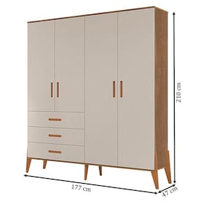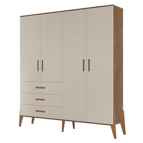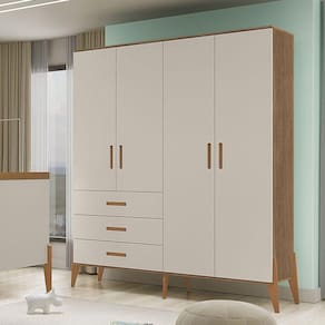 Guarda Roupa Infantil Emilly 4 Portas Off White Carvalho - Canaã Baby