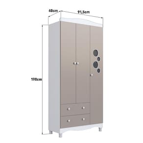 Guarda-Roupa Infantil Encanto 3 Portas 2 Gavetas Branco e Cinnamom