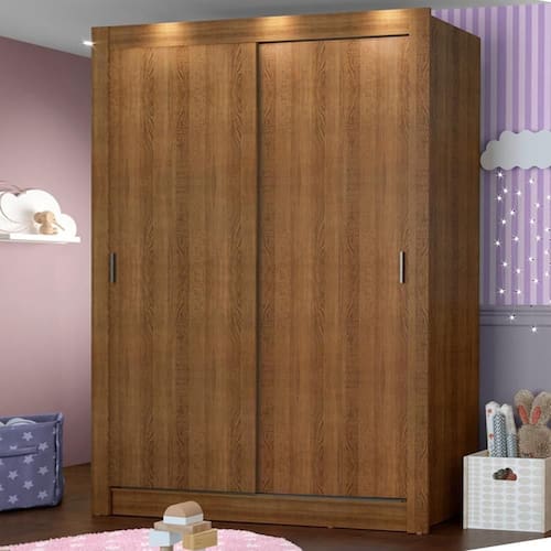 - Itens inclusos: Um cabideiro metálico grande | Duas prateleiras e quatro nichos | Duas portas de correr de madeira com puxadores em PVC