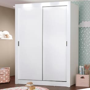 - Itens inclusos: Um cabideiro metálico grande | Duas prateleiras e quatro nichos | Duas portas de correr de madeira com puxadores em PVC