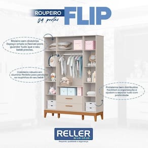 O Roupeiro Flip Infantil foi pensado para acompanhar a rotina dos pequenos com praticidade e charme. Com acabamento em Areia Acetinado, ele combina facilmente com qualquer estilo de quarto infantil, trazendo leveza e um visual moderno amplo espaço interno perfeito para organizar roupas, calçados e acessórios da criança, cabideiro metálico resistente ideal para manter as peças sempre bem cuidadas. Desenvolvido pela Reller com toda qualidade e facilidade para você cliente.