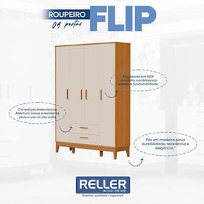 Guarda Roupa Infantil Flip 4 Portas Areia Acetinado Savana - Reller