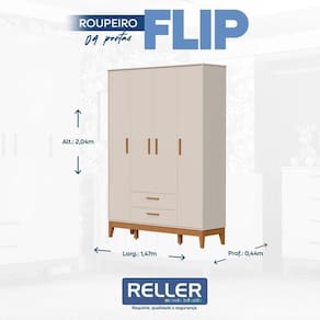 Guarda Roupa Infantil Flip 4 Portas Areia Acetinado - Reller