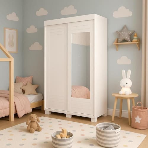 Transforme o quarto em um oásis de organização e estilo com o guarda-roupa infantil França. Suas 2 portas de correr apresentam detalhes trabalhados a laser, adicionando um toque de sofisticação ao ambiente. Com um cabideiro de alumínio, as roupas permanecem penduradas de forma organizada e acessível. As 2 gavetas deslizantes, equipadas com corrediças telescópicas, oferecem espaço adicional para armazenamento de pertences. Fabricado com materiais de alta qualidade, 100% em MDF, este guarda-roupa combina beleza e funcionalidade para atender às necessidades diárias com elegância.