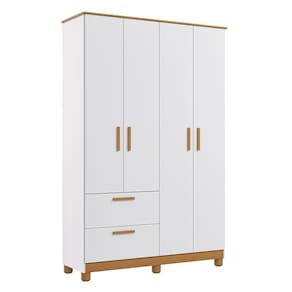 Guarda Roupa Infantil Jujuba 4 Portas e 2 Gavetas - Permóbili Baby O Guarda Roupa Infantil Jujuba 4 Portas é o sonho de qualquer criança e dos pais que buscam qualidade e praticidade. Sua estrutura em MDF com pintura UV garante resistência e um visual encantador para o quarto dos pequenos. Com quatro portas e duas gavetas, oferece amplo espaço para organizar roupas, brinquedos e acessórios. As dobradiças metálicas e corrediças telescópicas garantem durabilidade e suavidade no abrir e fechar. Além disso, possui cabideiro, prateleiras internas e puxadores em ABS, detalhes que agregam funcionalidade e charme ao móvel. Com capacidade para até 3kg em cada gaveta, é a escolha ideal para completar o quarto dos pequenos com conforto e elegância.