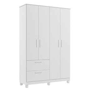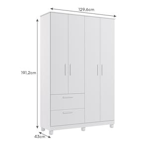 ESPECIFICAÇÕES: Estrutura em MDF Pintura UV 4 Portas Dobradiças metálicas 2 Gavetas Corrediças telescópicas Cabideiro Prateleiras internas Puxadores em ABS Pés em ABS Suporta até 3Kg em cada gaveta
