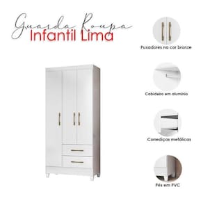 Guarda Roupa Infantil Lima 3 Portas Branco - Moval