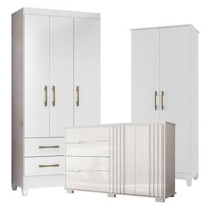 Guarda Roupa Infantil Lima com Cômoda Texas e Armário Multiuso Jade Branco Brilho Moval