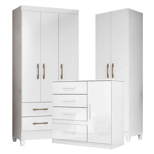 Guarda Roupa Infantil Lima com Cômoda Vênus e Armário Multiuso New Íris Branco Brilho Moval