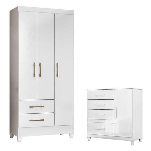 Guarda Roupa Infantil Lima e Cômoda Vênus com Pés Branco Moval