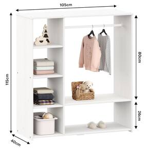 Características Principais: Material: Produzido com madeira maciça finger de qualidade, garantindo durabilidade e resistência. Design Aberto: Sem portas, proporciona fácil acesso às roupas e objetos, incentivando a autonomia das crianças. Cabideiro Integrado: Ideal para pendurar roupas, mantendo-as organizadas e sem amassados. Espaço Amplo: Com várias prateleiras e nichos, oferece espaço suficiente para roupas, brinquedos e acessórios sendo possível a remoção das prateleiras. Praticidade: Facilita a visualização e o acesso aos itens do dia a dia. Estímulo à Organização: Perfeito para ensinar as crianças a manterem suas roupas e pertences organizados. Versatilidade: Pode ser utilizado tanto em quartos de meninos quanto de meninas, além de se adaptar a diferentes estilos de decoração.