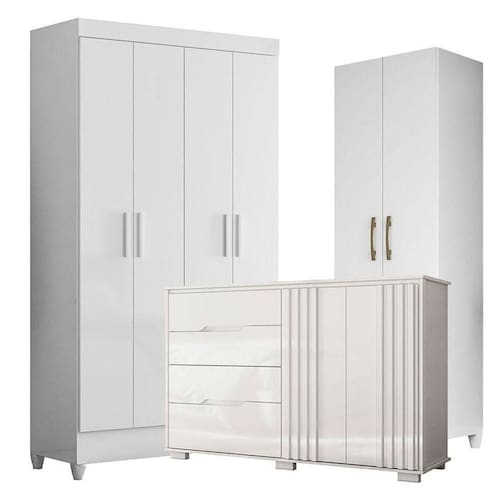 Guarda Roupa Infantil Madri Branco Brilho Moval