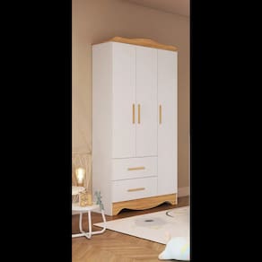 O Armário Clara 3 Portas Lisas Plus é um produto 100% MDF e possui pintura atóxica. Sua estrutura é fabricada em chapa de 12 mm, sendo seu tampo superior em chapa de 15 mm. Possui puxadores em MDF revestido com papel melamínico, cabideiro metálico e gavetas com corrediças telescópicas. Acompanha dois modelos de rodapés que podem ser definidos no momento da montagem.