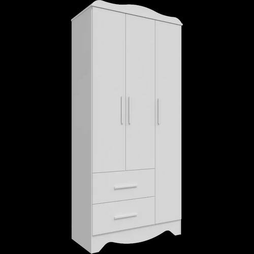 O Armário Clara 3 Portas Lisas Plus é um produto 100% MDF e possui pintura atóxica. Sua estrutura é fabricada em chapa de 12 mm, sendo seu tampo superior em chapa de 15 mm. Possui puxadores em MDF revestido com papel melamínico, cabideiro metálico e gavetas com corrediças telescópicas. Acompanha dois modelos de rodapés que podem ser definidos no momento da montagem.
